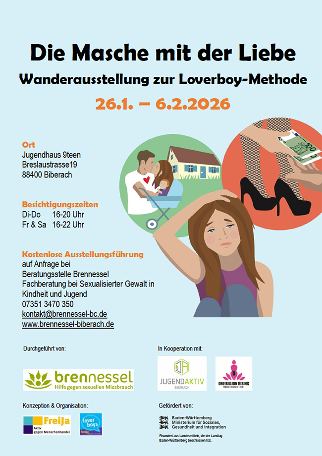 Wie im letzten Jahr gab es wieder die Wanderausstellung zur Loverboy-Methode im Jugendhaus 9teen, Biberach