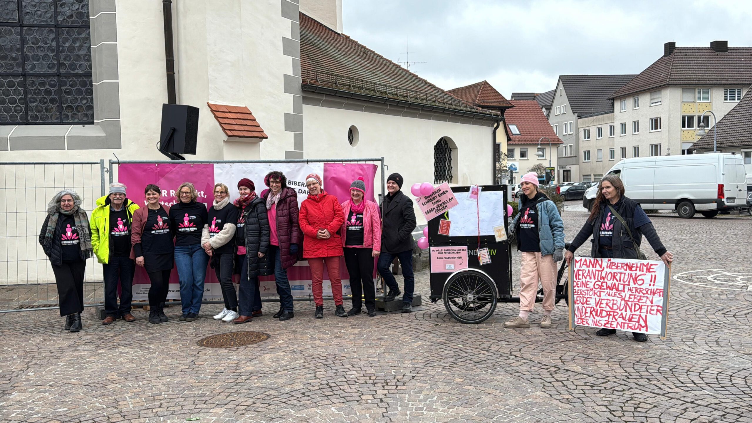 Mit einer Schuhinstallation mit 155 Paar Frauenschuhen wurde als Mahnung und in Gedenken an 155 Frauen erinnert, die im Jahr 2023 in Deutschland durch häusliche Gewalt von ihrem Partner oder Ex-Partner getötet wurden.
